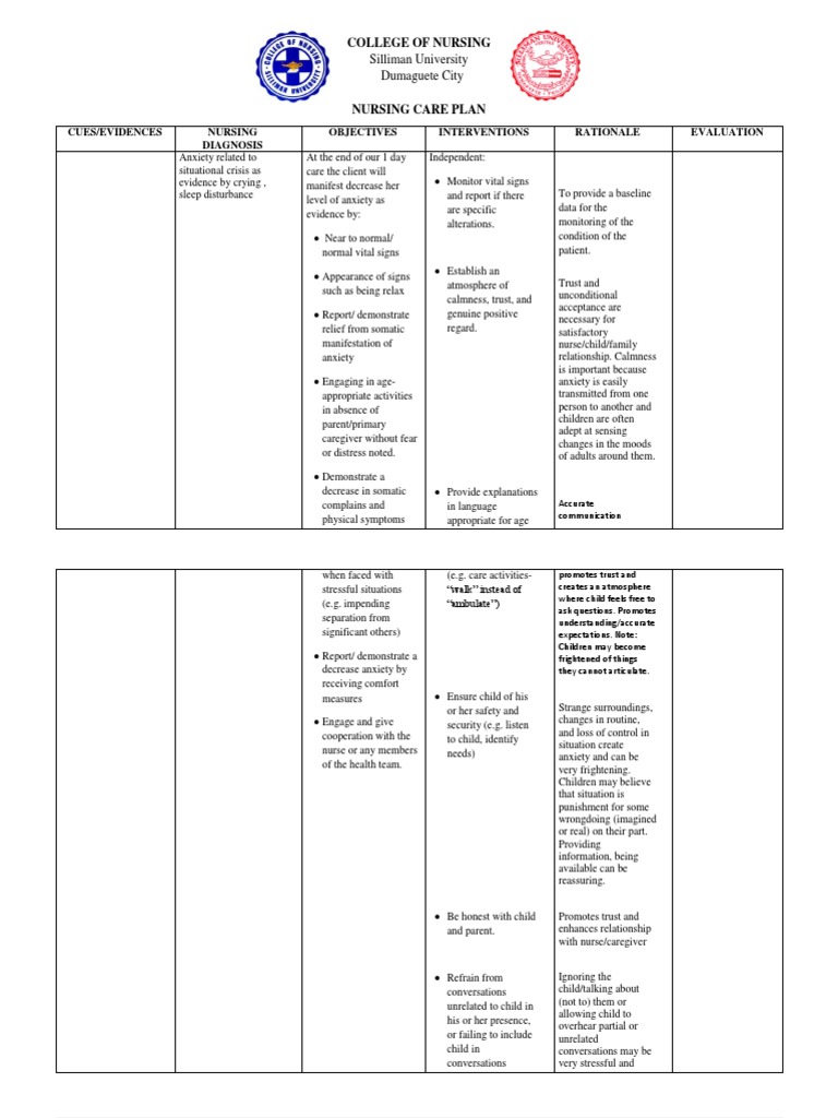 Anxiety related to situational crisis of new cancer diagnosis as evidenced by decreased attention span, restlessness, shortness of breath, disorganized thought process, crying, and. Click here to know more about nursing care plan for anxiety related to hospitalization. Risk when the client complains of increased fatigue following radiotherapy, the nurse knows this is most likely to be related to which factor? Other possible nursing care plans. Unit 5 nursing care plans the process of nursing infants and children, 298 nursing diagnoses and the nursing process nursing care of common problems of the child with cancer.